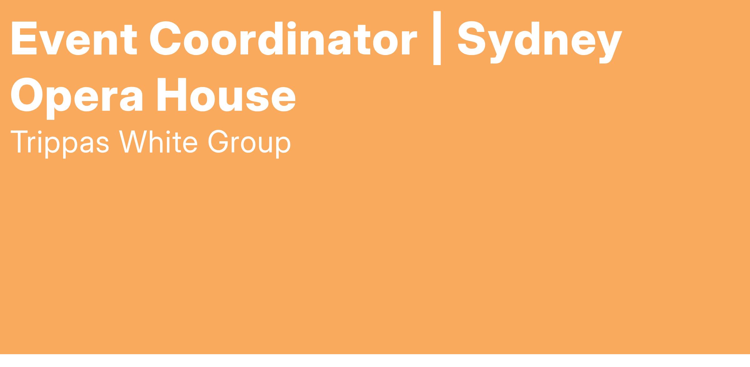 We are excited to be recruiting for the event spaces in Sydney Opera House. Trippas White Group has a proud history of providing boutique and exceptional hospitality services to guests, and we are looking for a skilled and enthusiastic Event Coordinator to join our expanding team.