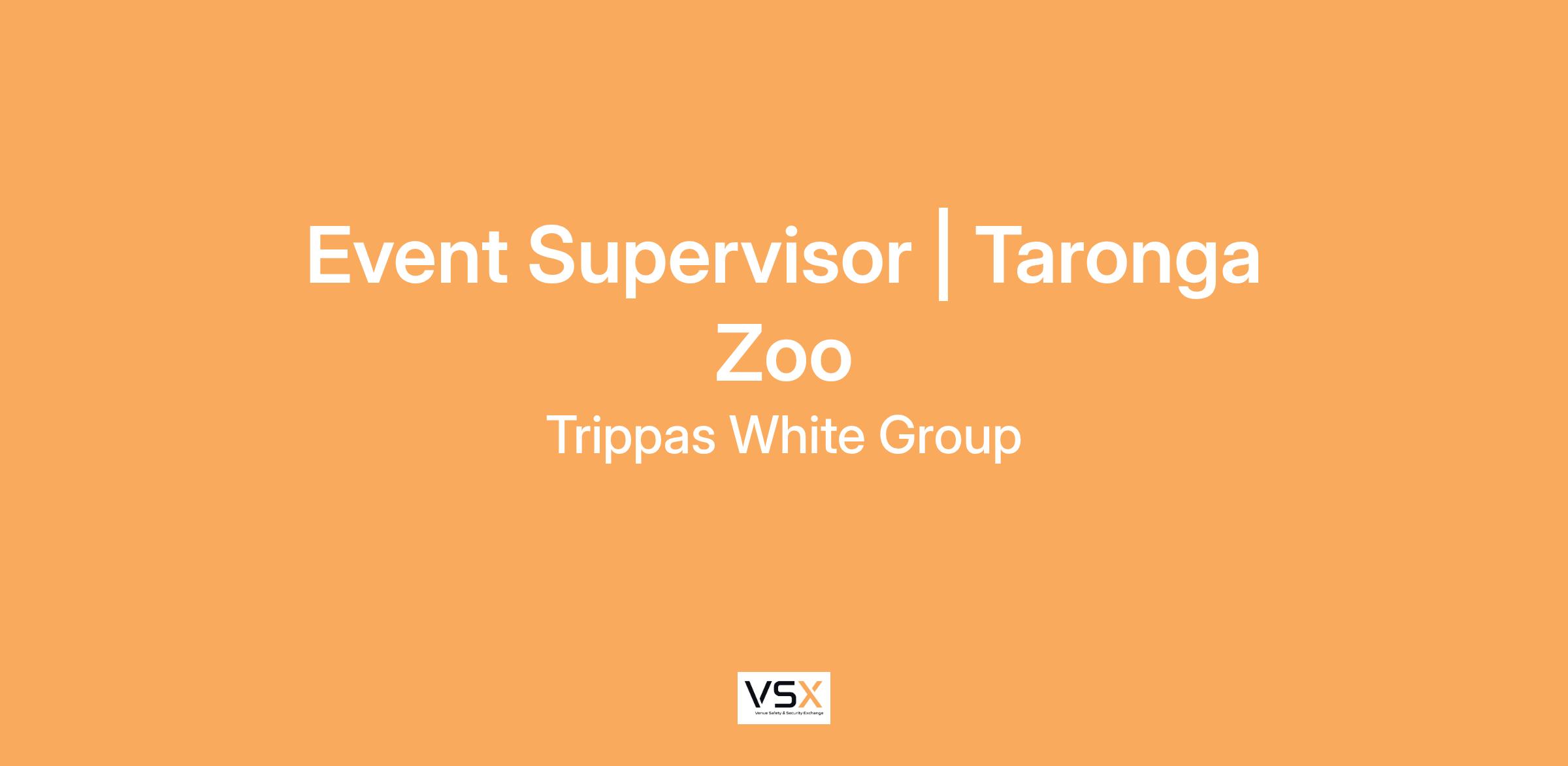 - We are excited to announce an opening to be a part of a growing team atTaronga Zoo. We are looking for an Event Supervisor to join our team. Reporting in to the Venue Manager, this person will be responsible for the smooth operation of events.