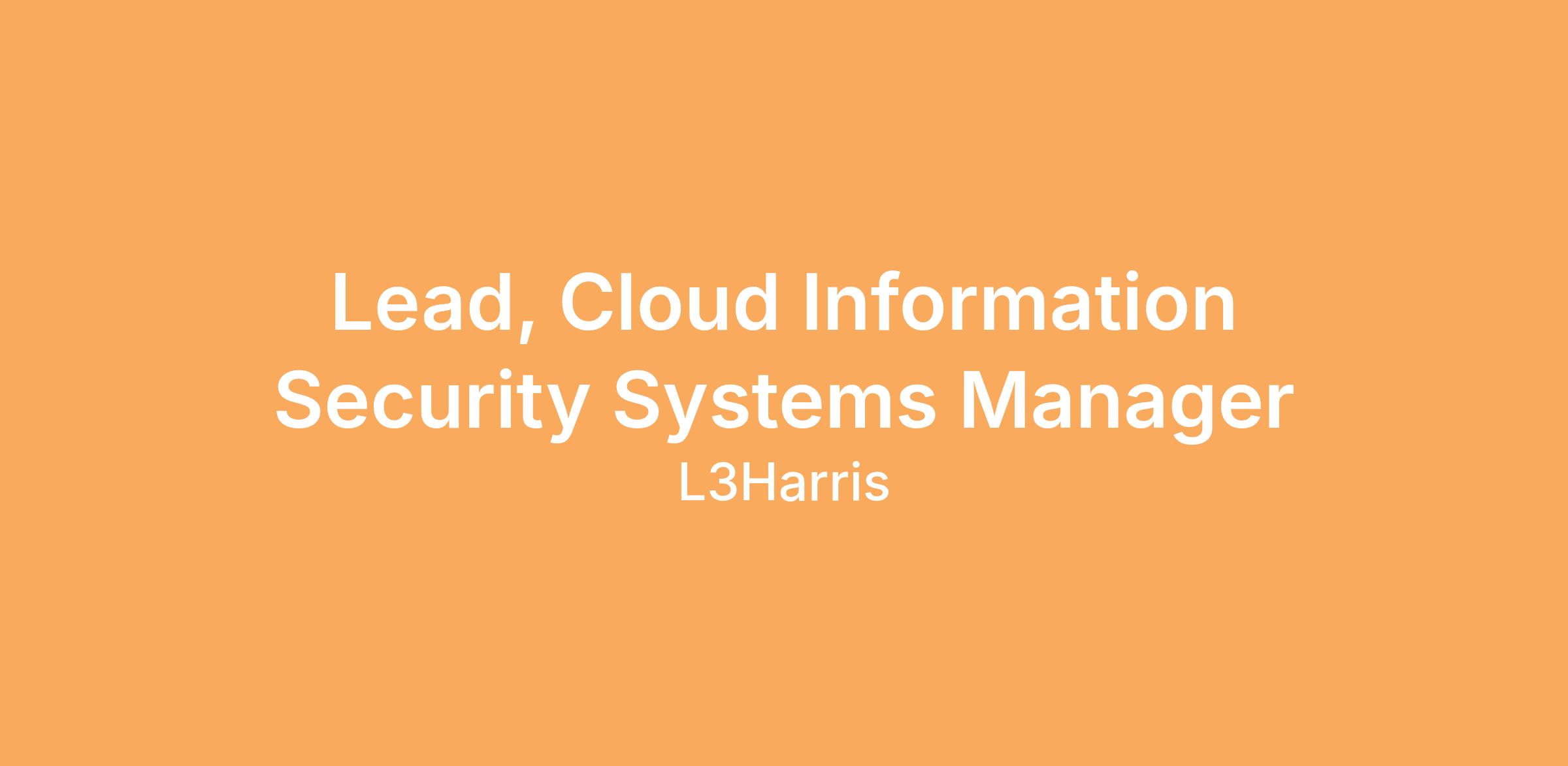 Job Title: Lead, Cloud Information Systems Security Manager