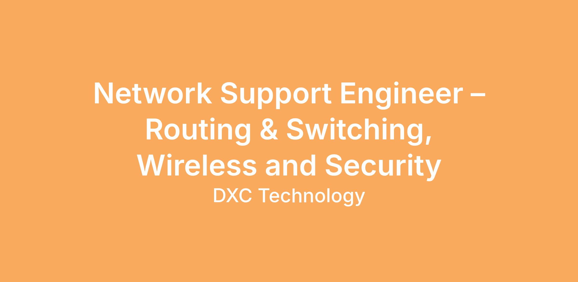 www.dxc.technologyThe function of the Network Support Engineer is to to provide both Level2/3 and advanced technical support onsite at the customer’s premises Mon-Fri during Business Hours. The Network Support Engineer is a hand on role and will be required to have an extensive technical background in data networking and security products support. The role encompasses a wide range of responsibilities in the areas of data networking, security and wireless ranging from design, product audits, possible site surveys, installation to trouble shooting and support for customers.
