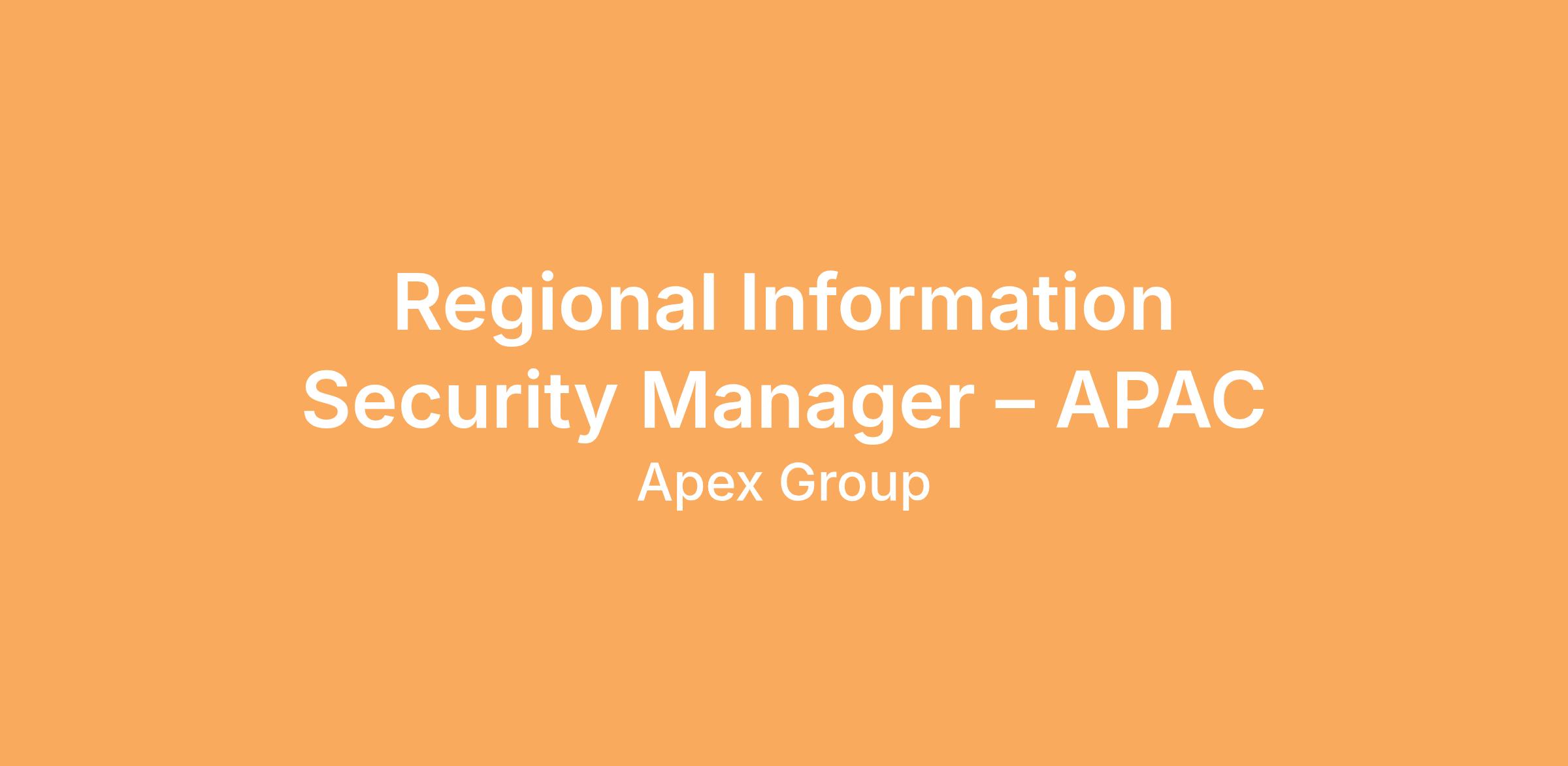 Disclaimer: Unsolicited CVs sent to Apex (Talent Acquisition Team or Hiring Managers) by recruitment agencies will not be accepted for this position. Apex operates a direct sourcing model and where agency assistance is required, the Talent Acquisition team will engage directly with our exclusive recruitment partners.
