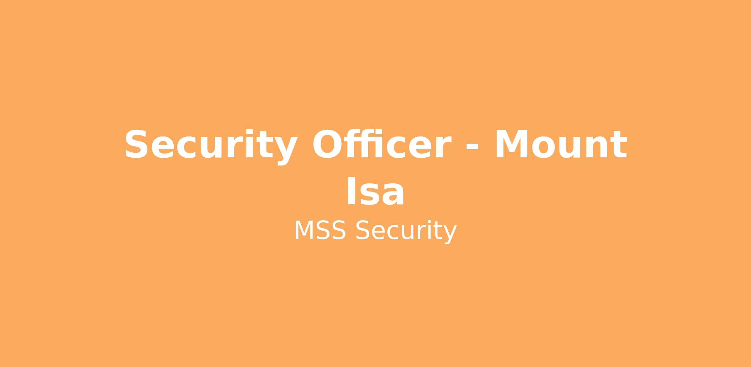 MSS Security is looking for Security Officers in Mount Isa to provide a security presence - access control, mobile/foot patrols and respond to emergencies at our client site. You will be part of an enthusiastic, committed and customer focused team. This role is a 4 on 4 off rotational roster with 12 hour shifts. Local candidates are encouraged to apply!