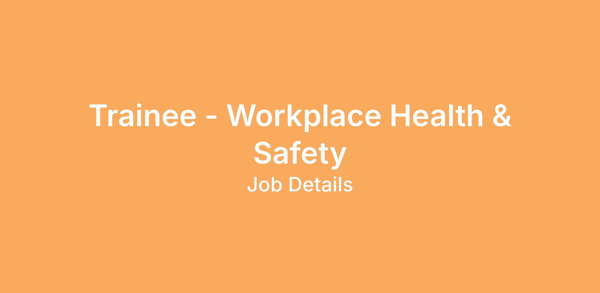 For more information read the full Role Description: Workplace Health and Safety Trainee